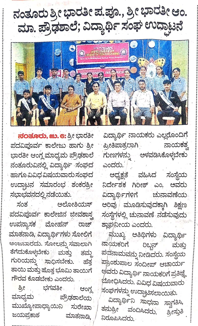 ಶ್ರೀ ಭಾರತೀ ಪದವಿಪೂರ್ವ ಹಾಗೂ ಶ್ರೀ ಭಾರತೀ ಆಂಗ್ಲ ಮಾಧ್ಯಮ ಪ್ರೌಢಶಾಲೆಯಲ್ಲಿ ವಿದ್ಯಾರ್ಥಿ ಸಂಘದ ಉದ್ಘಾಟನೆ- ಪತ್ರಿಕಾ ವರದಿ
